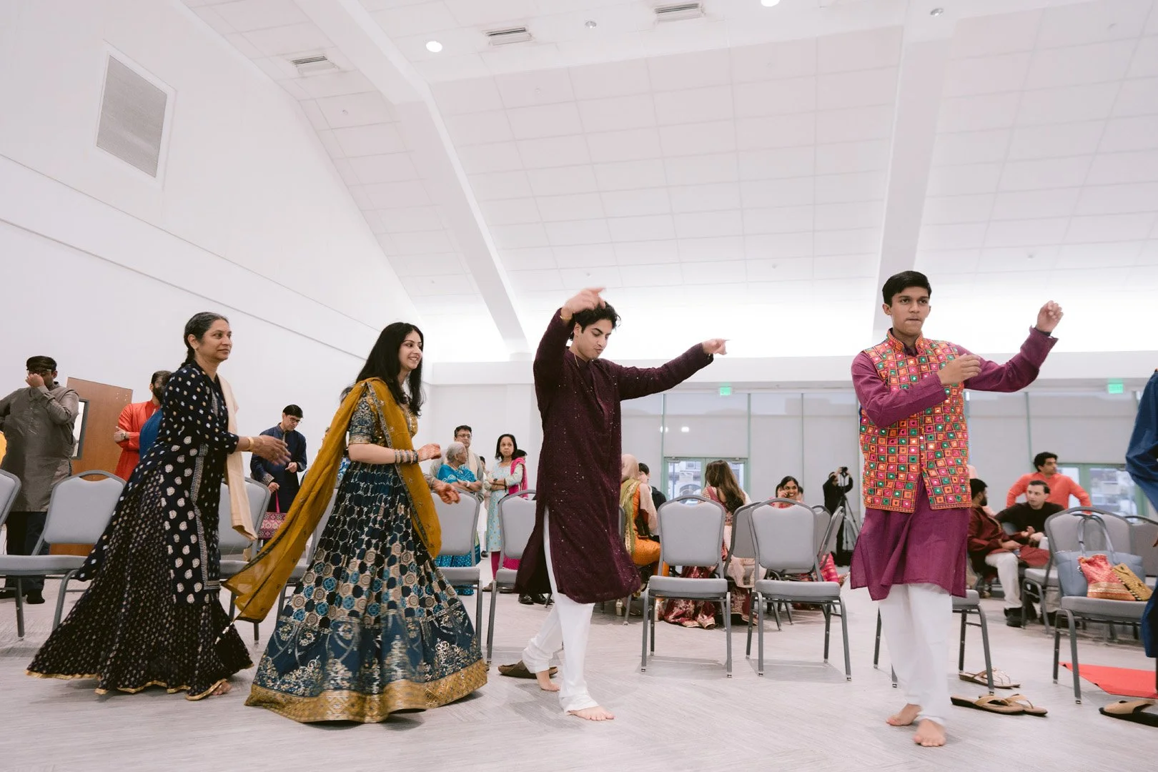 Garba is an essential and vibrant part of every Gujarati pre-wedding festivities, showcasing cultural heritage and community spirit. The rhythmic beats of the dhol music alongside the lively garba steps create an atmosphere filled with joy and excitement. Soham’s garba event was particularly intimate, inviting only his close family and cherished friends to join in the celebration. Throughout the night, there were captivating dance performances by both friends and family, which entertained everyone in attendance. The evening was filled with garba dancing, and as the night progressed, it culminated in an open dance session that allowed everyone to join in on the fun.